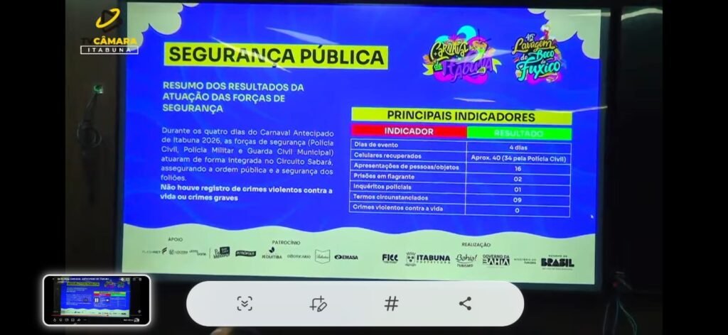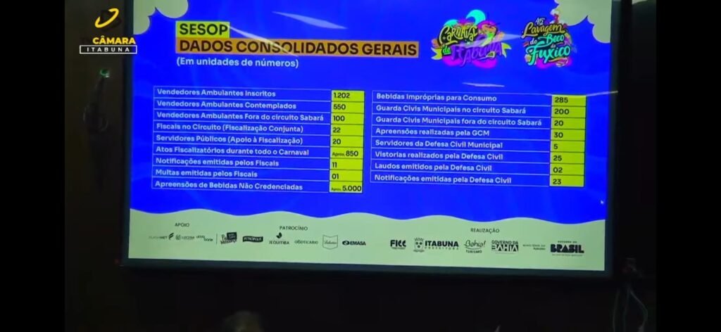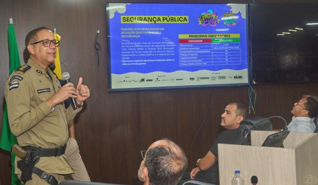A audiência pública de prestação de contas do Carnaval Antecipado de Itabuna, realizada no Plenário Raymundo Lima, na Câmara de Vereadores, trouxe dados expressivos sobre segurança pública, organização e impacto social do evento. De acordo com o comandante do 15º BPM, tenente-coronel Robson Farias, a festa apresentou baixíssimos índices de violência no Circuito Sabará e nenhum crime contra a vida, um resultado considerado histórico para eventos de grande porte no interior da Bahia.